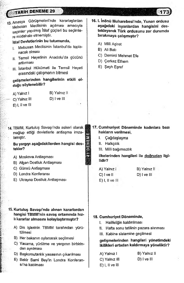 3. Tarih Deneme Sınavı – Online Çöz – 29