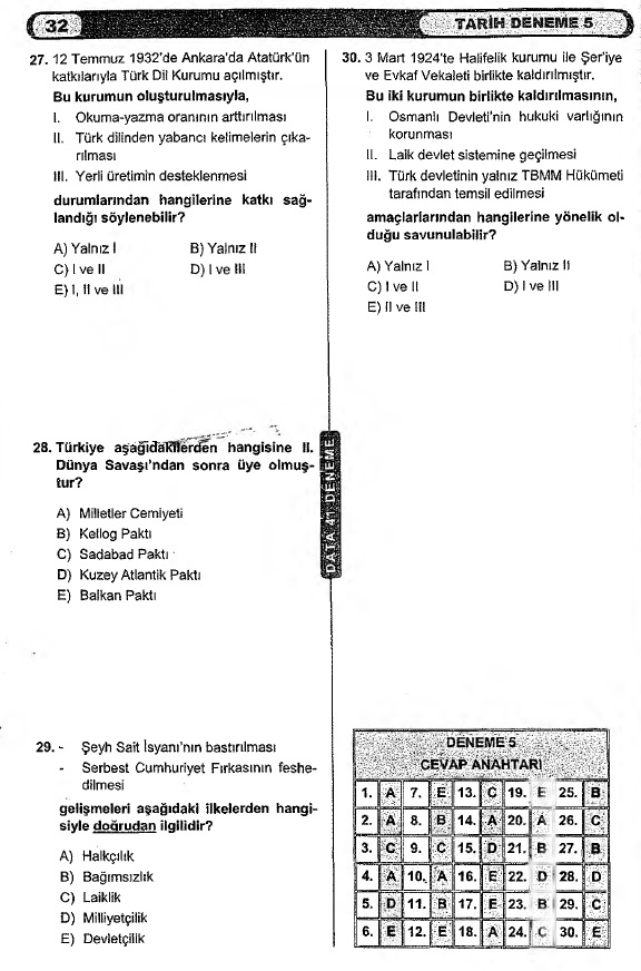 3. Tarih Deneme Sınavı – Online Çöz -5